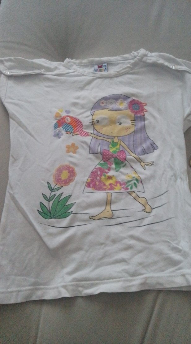 Pamuk kumaştan, kısa kollu, yuvarlak yakalı, bol kesim kız çocuk tişörtü. Renkli bohem baskı detayı bulunur.