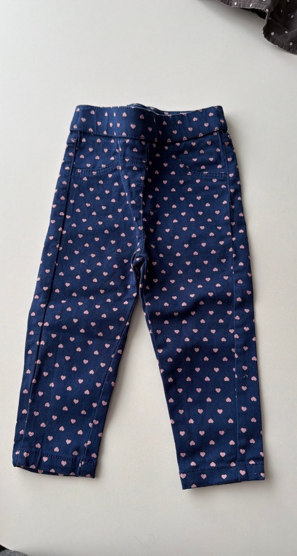 Kız çocukları için denimden yapılmış, elastik bel ve renkli baskılı kalp desenli regular fit tayt. Rahat ve şık bir sokak stili için uygundur. 1 yaşa kadar rahat olur