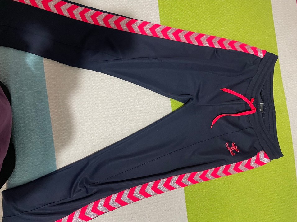 Sentetik kumaştan yapılmış, renkli baskılı ve fermuarlı cepli, sokak stili kız çocuk eşofman altı.