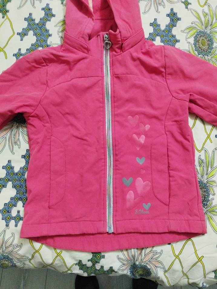 Fermuarlı ve yakalı, kız çocukları için renkli baskılı, pembe tonlarında, yumuşak ve sıcak kumaştan yapılmış dar kesim mont parmak geçmeli detaylı içi polarlı ama ince mevsimlik mont