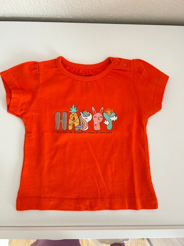 Kız çocukları için pamuklu, kısa kollu, bol kesim tişört. Önünde renkli baskılı desen bulunur.