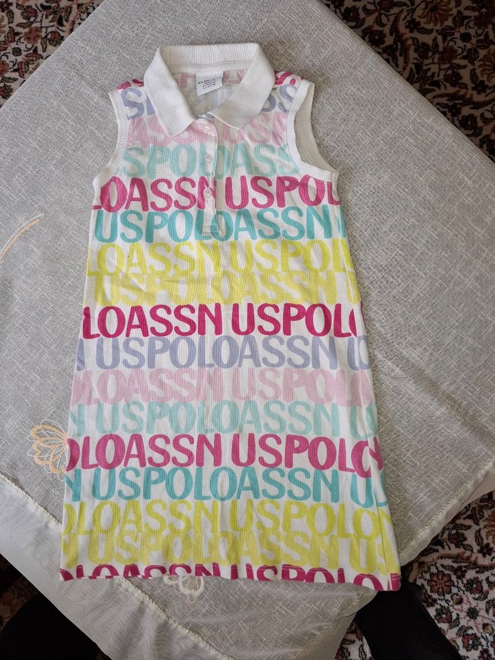 Kolsuz, straplez yakalı, bol kesim kız çocuk elbisesi. Renkli baskılı ve fermuarlı, yumuşak sentetik kumaştan üretilmiştir. Trend sokak tarzı için uygundur. 6-7 yaş polo lakost elbise