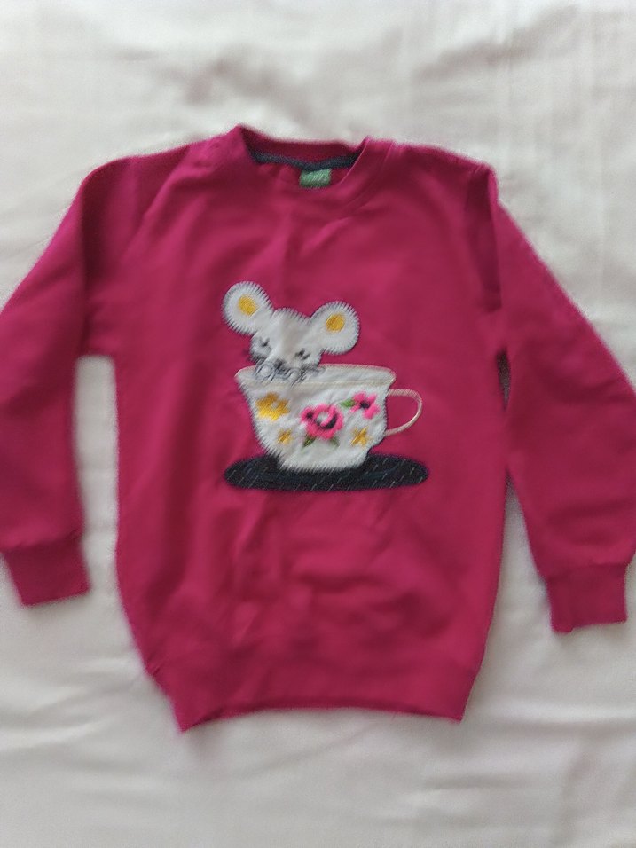 Kız çocukları için uzun kollu, yuvarlak yakalı, yumuşak ve sıcak kumaştan yapılmış renkli baskılı ve örme dokulu, bol kesim pembe sweatshirt. 3 parça 50 TL olarak kampanya fiyatıdır
