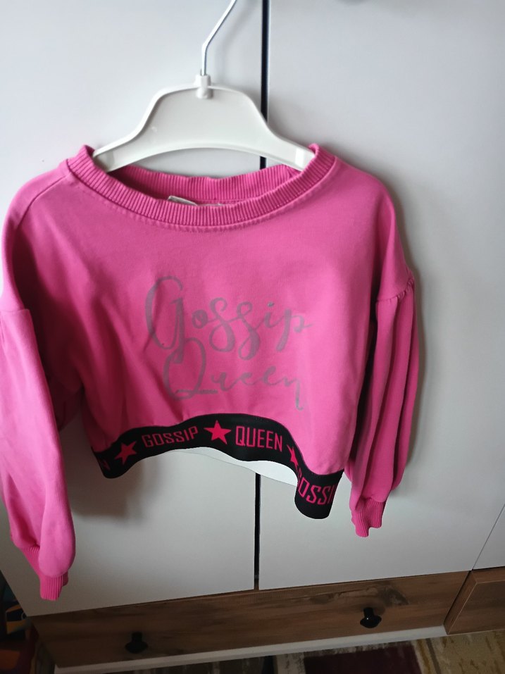 Uzun kollu, bisiklet yakalı ve renkli baskılı "Gossip Queen" yazılı, bol kesim kız çocuk sweatshirtü. Fırfır detaylı ve yumuşak, sıcak kumaştan üretilmiştir.