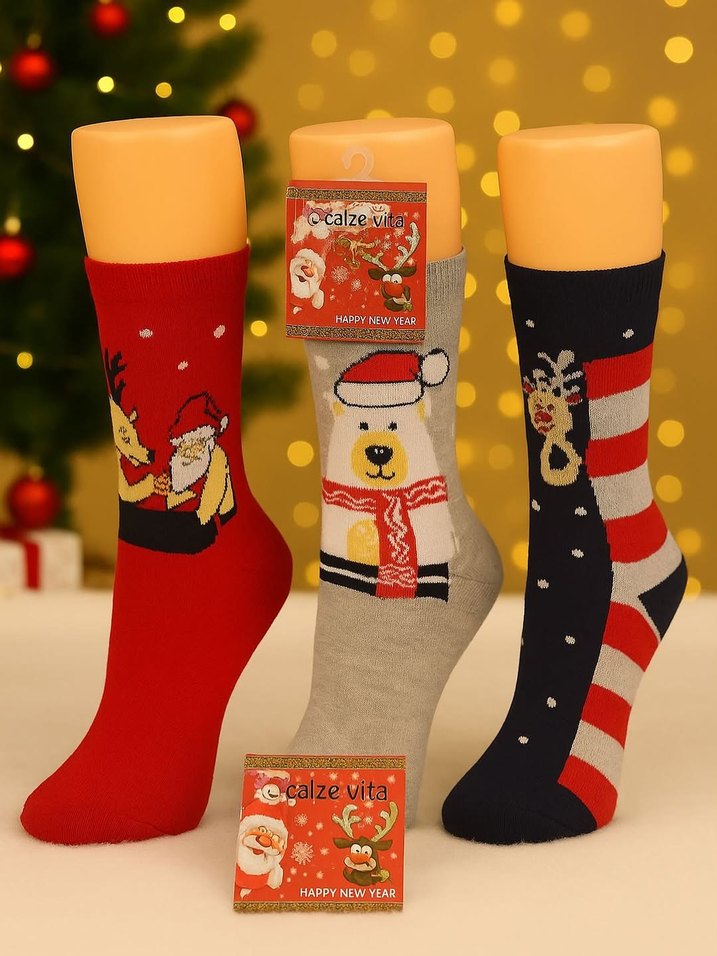 Kız çocukları için renkli, polar dokulu, Noel temalı baskılı çoraplar. Marka: c.calze vita.