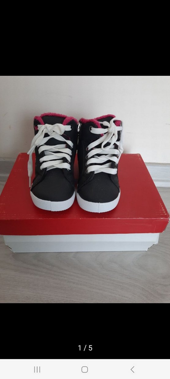 Renkli baskılı, kauçuk tabanlı kız çocuk spor ayakkabısı. Cırt cırtlı ve beyaz bağcıklı, pembe iç detaylı, trend sokak stili için uygundur.
