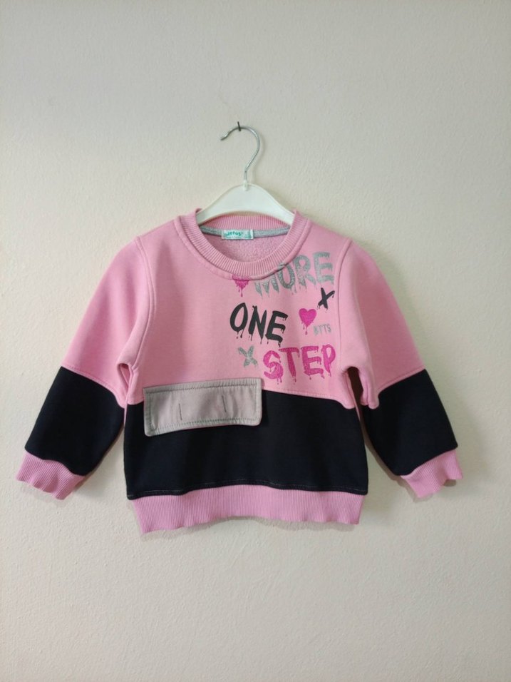 3 yaş uyumlu, çok temiz kullanılmış sweatshirt. Etiketi olmadığı için ölçülerini baz aldım, tam kalıptır. Hiçbir kusuru yoktur, renkleri canlıdır.