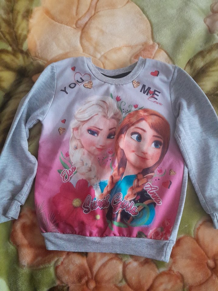 Gri renkli, Elsa ve Anna baskılı kız çocuk sweatshirtü.