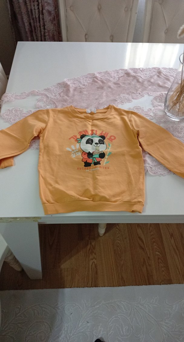 Uzun kollu, bisiklet yaka, bol kesim kız çocuk sweatshirtü. Yumuşak örgü kumaştan olup, renkli baskılı deseni ve bej rengiyle sokak stili için uygundur.