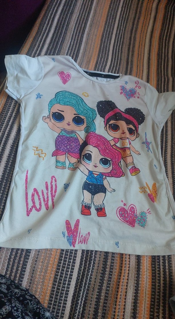 Pamuklu, kısa kollu ve bol kesim kız çocuk tişörtü. Renkli baskı ve dantel detaylarıyla trend sokak tarzına uygun.