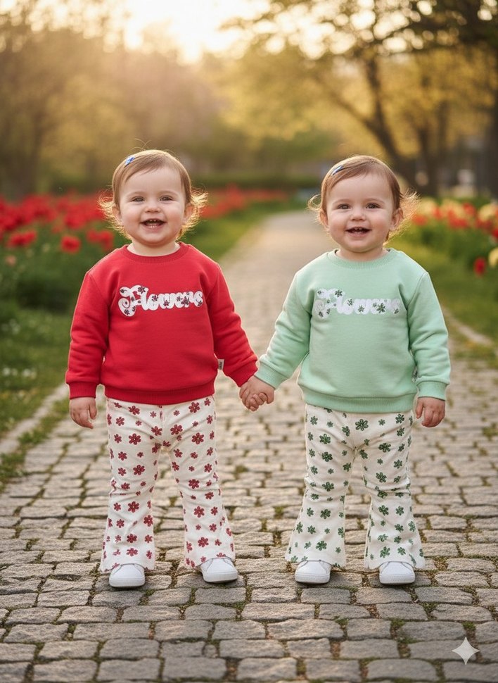 Kız çocukları için uzun kollu, triko örgülü ve baskılı renkli eşofman takımı. Rahatlık sağlayan yumuşak ve kalın kumaştan üretilmiştir.