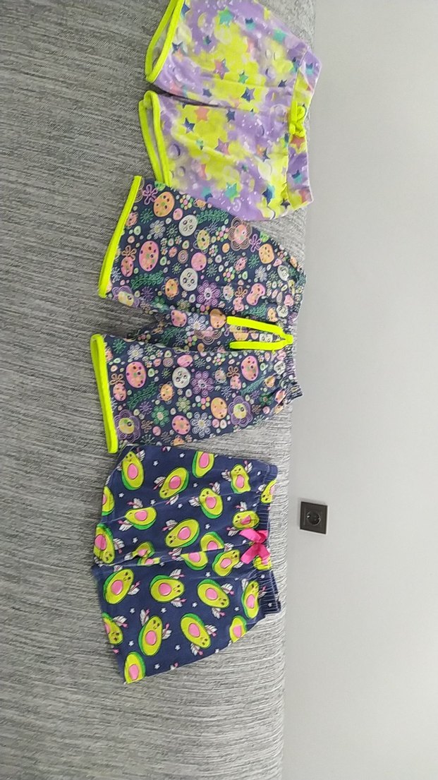 Renkli batik desenli, elastik bel bantlı, pop kültür temalı kız çocuk şortları, yumuşak sentetik kumaştan üretilmiştir. üç adet fiatidir