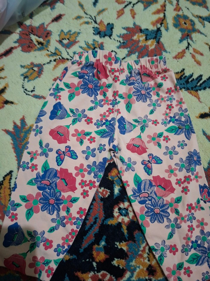 Rahat kesim ve elastik bel bandına sahip kız çocuk taytı, renkli çiçek desenli bir kez giyilmiştir, kusursuz, 12 aya kadar uygundur, toplu alışta 10 tldir