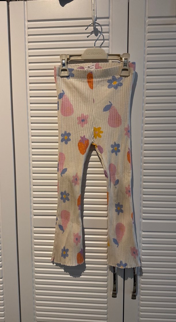 Kız çocukları için fitted triko tayt, pastel renklerde çoklu çiçek deseniyle bohem ve retro sokak stilini yumuşak ve rahat kumaşla buluşturuyor.