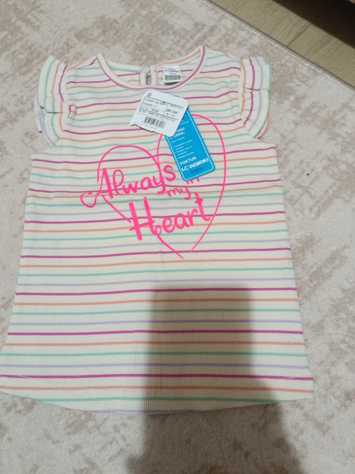 Kız Çocuk Renkli Çizgili Baskılı Tişört
