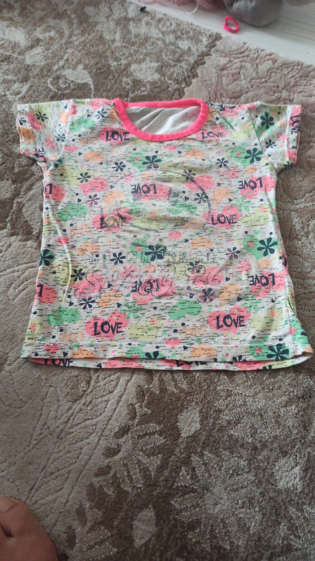 Kız çocuk tişörtü, kısa kollu, bisiklet yaka ve bol kesimdir. "LOVE" baskısı ve dantel detaylarıyla renkli, trend sokak tarzına uygundur.