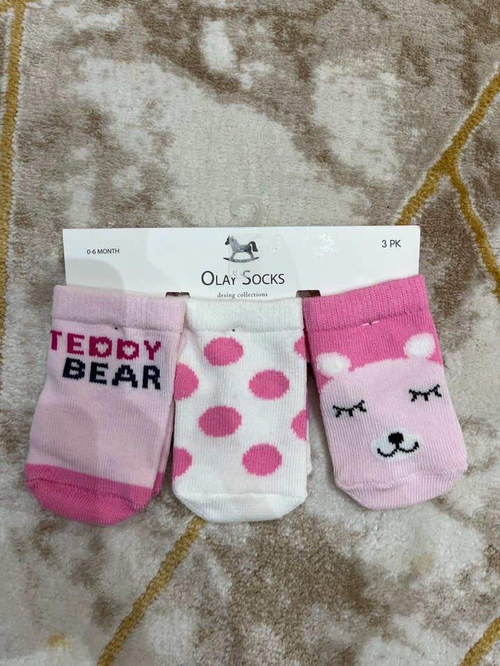 Kız Çocuk Renkli Desenli 3'lü Yumuşak Çorap 6-9 aylık
