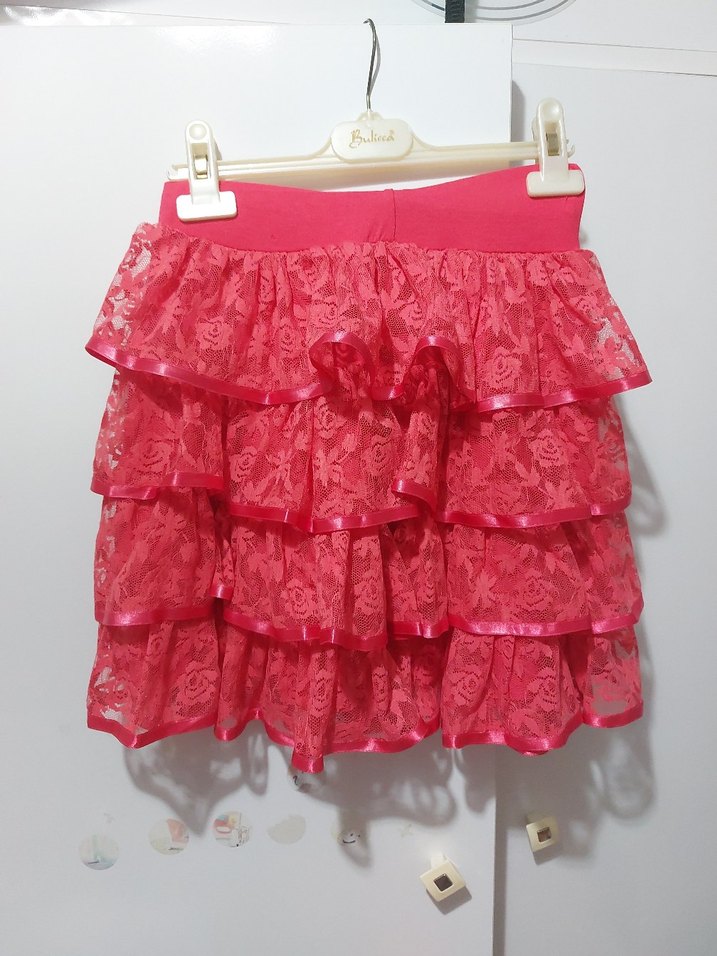 Kız Çocuk Renkli Fırfırlı Nakışlı Etek