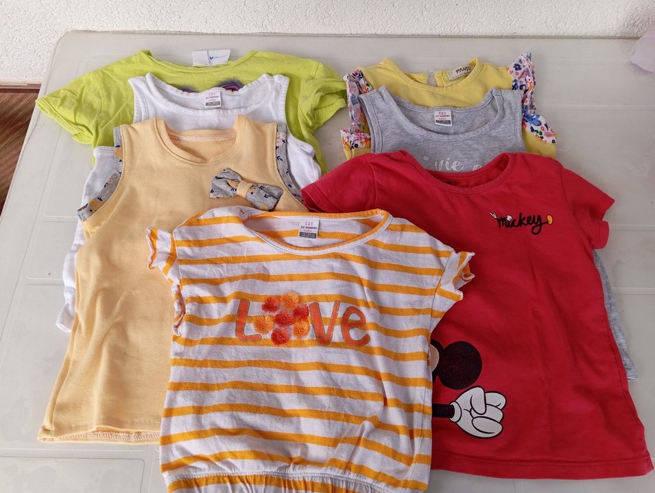 Rahat kesim, pamuk kumaşlı kız çocuk tişörtleri; renkli baskılar, kısa kollu ve yuvarlak yaka. Bazılarında cırt cırt detay bulunur. tane 40 TL 2.3 4.5 yaş uygundur LCW ve zara karışık.