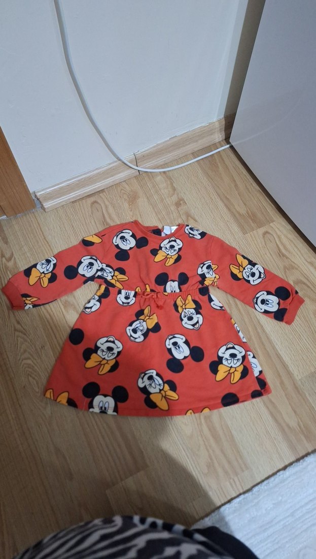 Kız Çocuk Renkli Mıckeyli Uzun Kollu Elbise