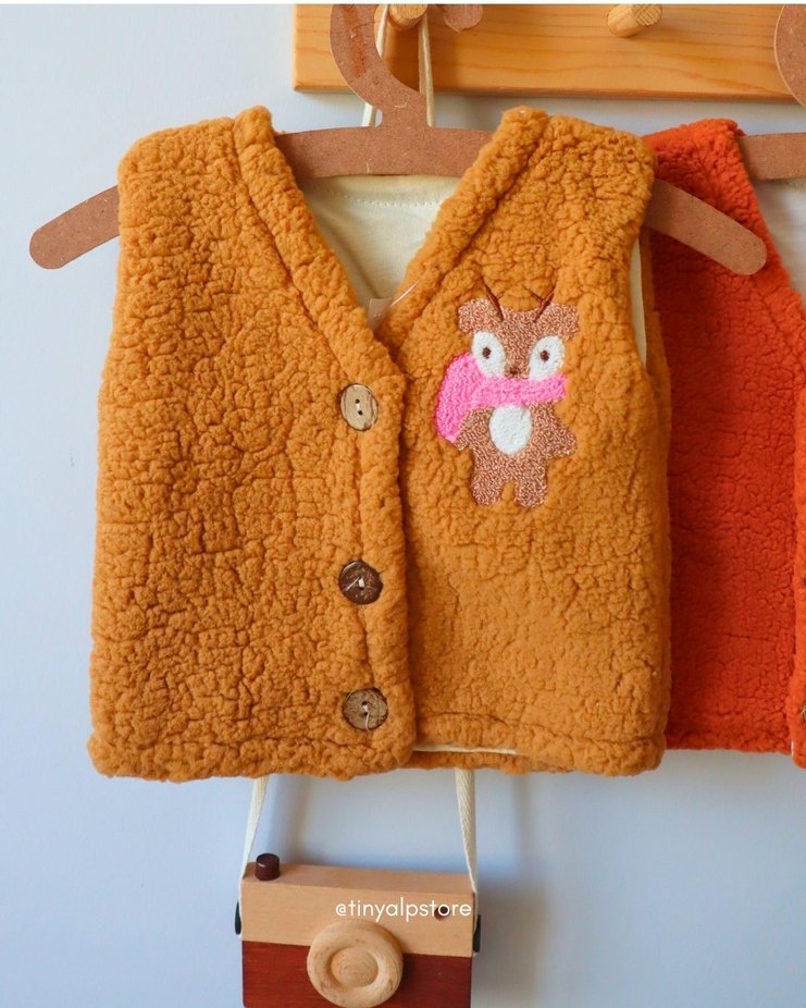 Son adet kaldı ilanı alabilirsiniz ❣️Kahverengi, düğmeli, yuvarlak yakalı, renkli nakışlı, kolsuz yelek. Yumuşak ve sıcak kumaştan, bol kesim, bohem tarzda.
