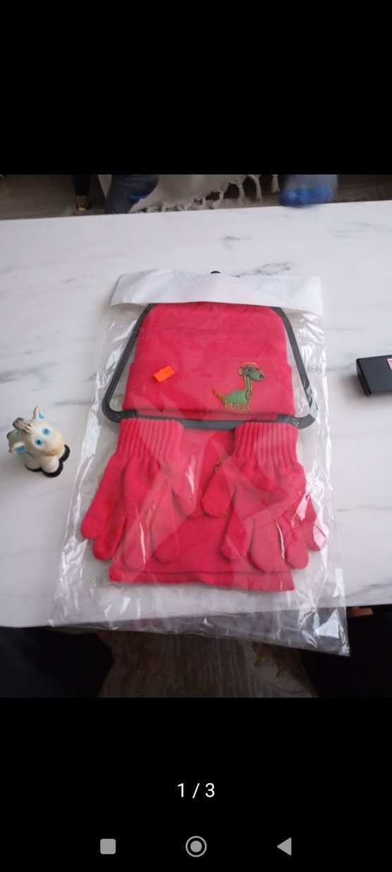 Yumuşak kürk dokulu, kırmızı renkli örme kız çocuk eldivenleri, nakışlı dinozor deseniyle. Sokak modasına uygun.