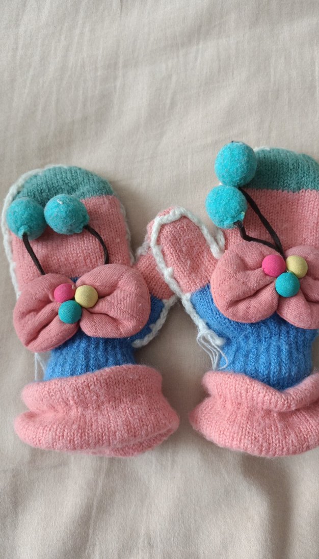 Kız Çocuk Renkli Nakışlı Örgü Eldiven