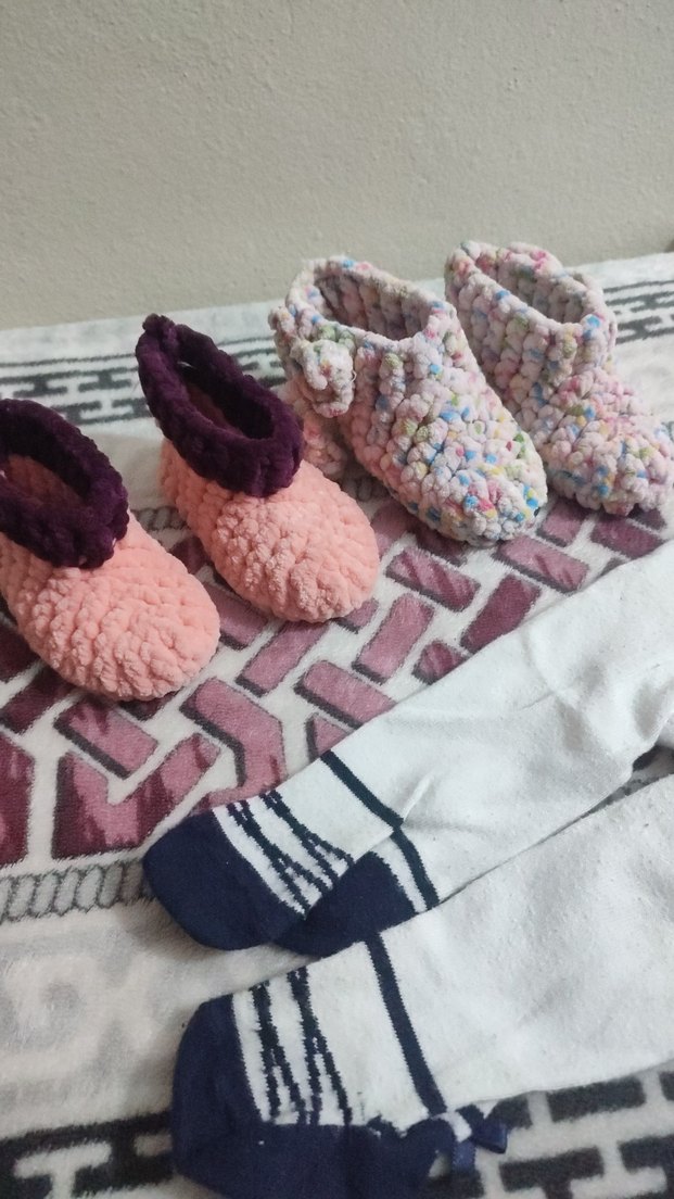 Kız Çocuk Renkli Örgü Ev Terlikleri