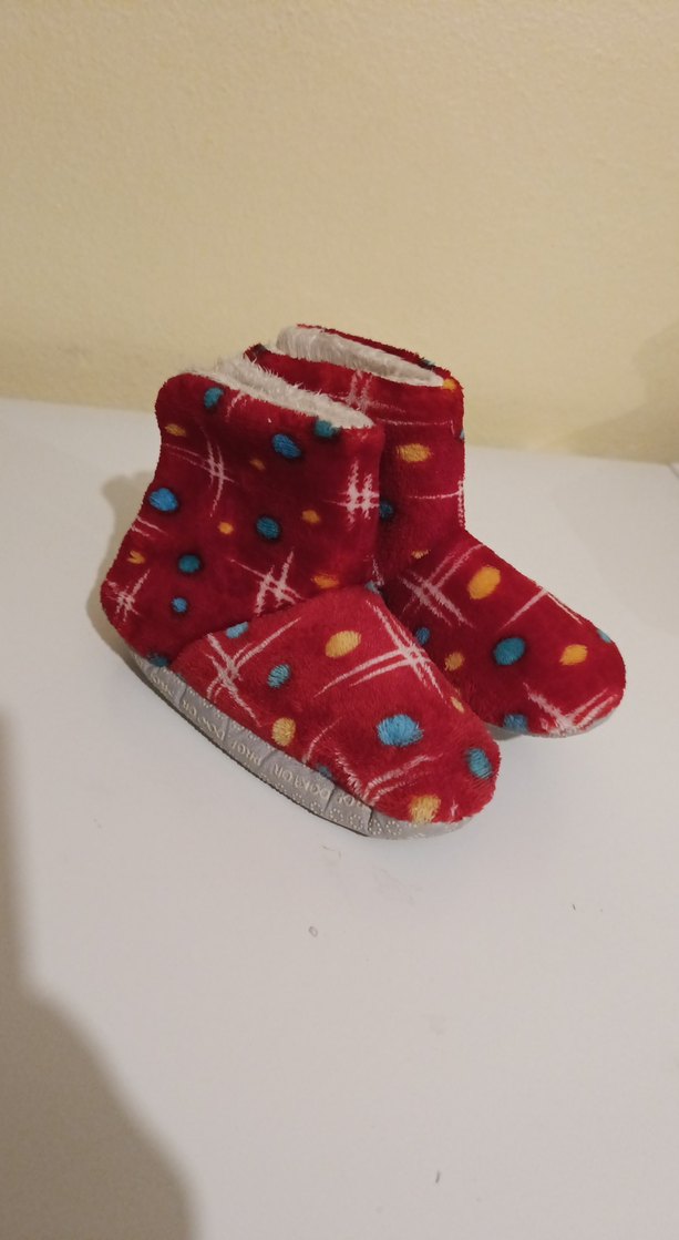 Kız çocukları için örgü desenli, yumuşak fleece kumaştan yapılmış, renkli batik desenli sıcak ev botlarıdır. Ev içinde rahatlık sağlar.