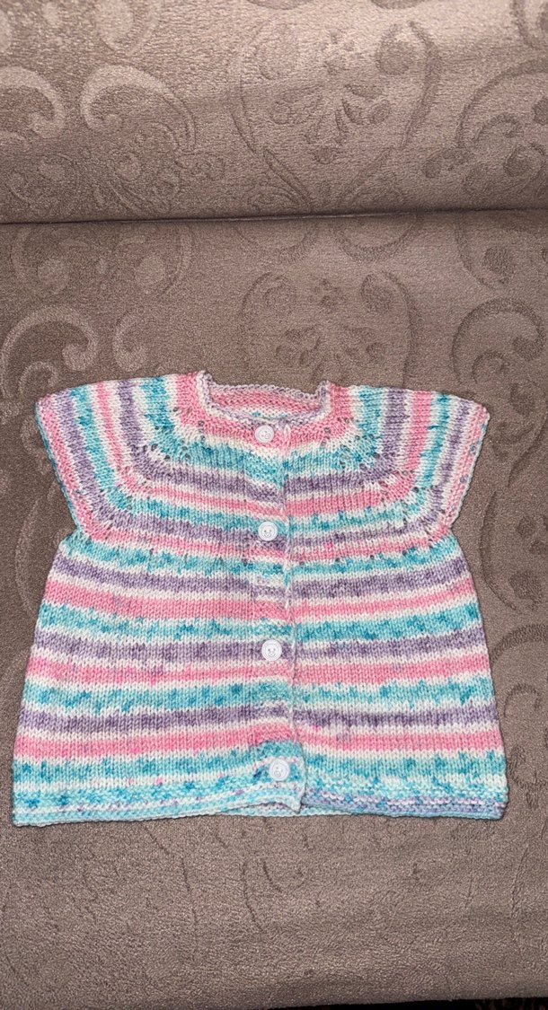 Kız Çocuk Renkli Örme Kolsuz Hırka el örgüsü