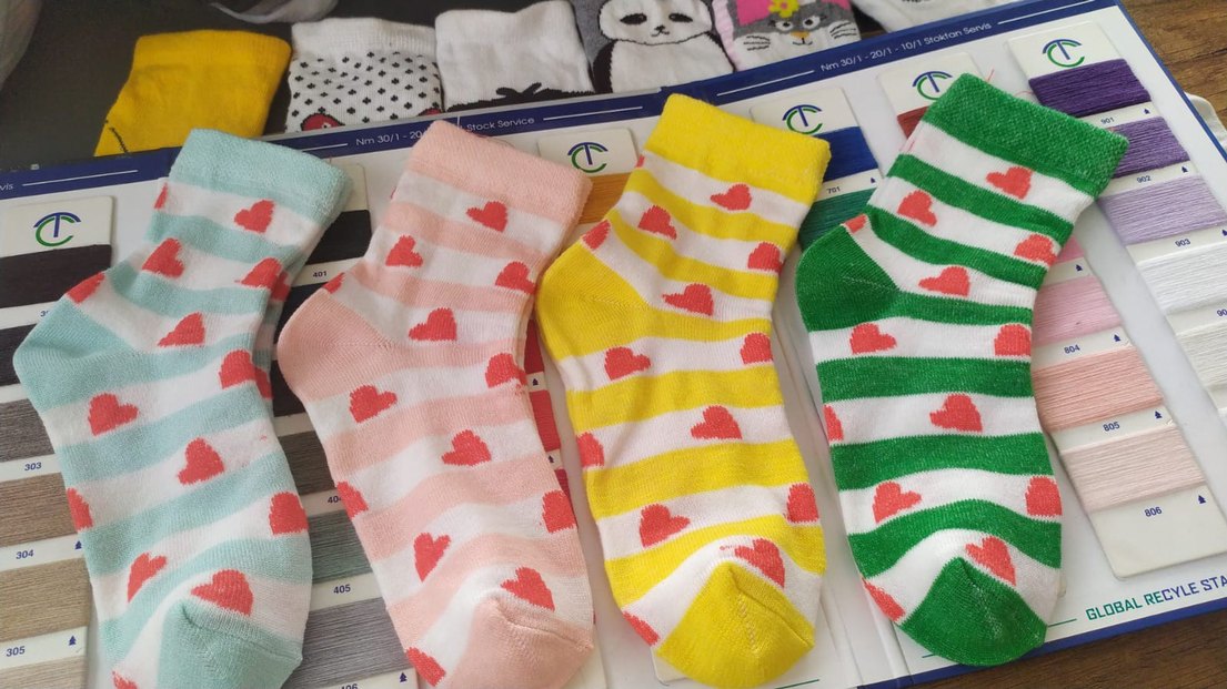 Kız çocukları için renkli pamuklu çoraplar, kalp desenleri ve çizgili tasarımlarla. Yumuşak ve rahat kullanım sağlar.