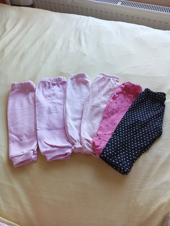 Rahat pamuklu kumaştan, elastik bel bantlı, pembe ve siyah küçük desenli kız çocuk tayt seti. Günlük kullanım için uygundur.