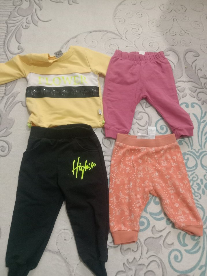 Pamuklu, rahat kesim kız çocuk sweatpants, renkli ve örgü dokulu, elastik bel ile sokak stili için uygun. takım 1 yaş pijamalar 6 ay