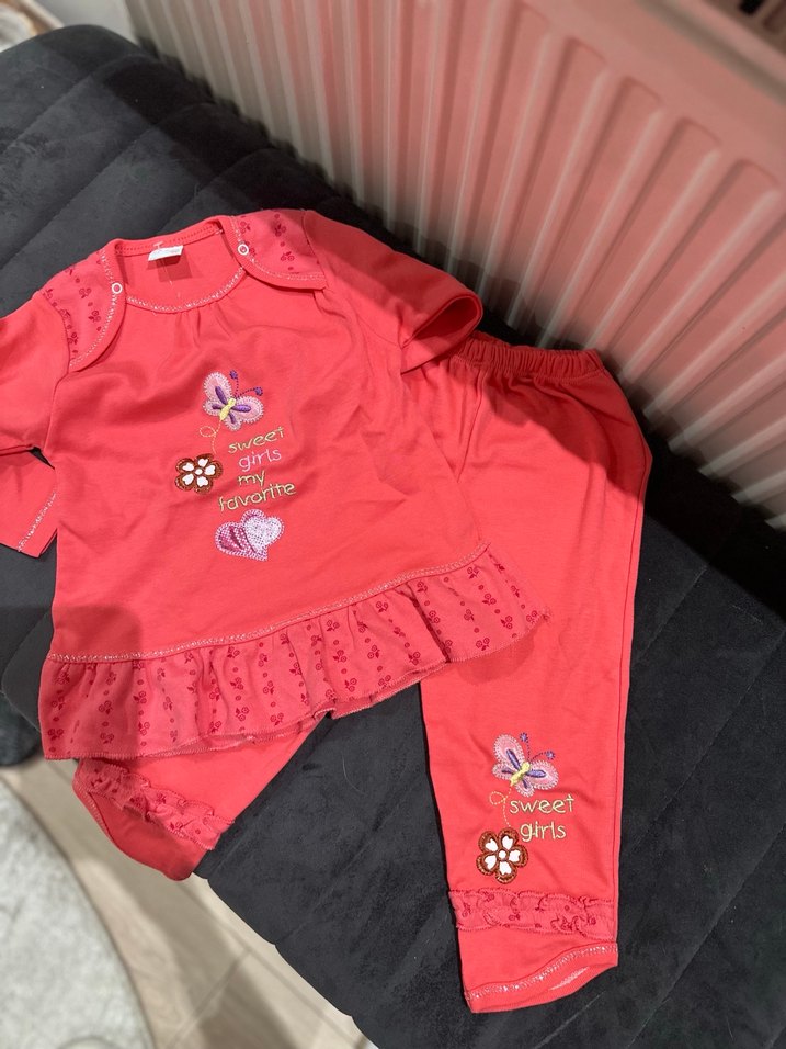 Kız Çocuk Renkli Pembe Uzun Kollu alt üst takım