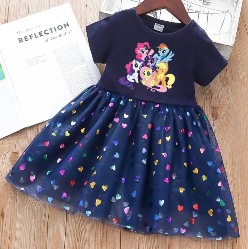 Kısa kollu, yuvarlak yakalı ve sentetik kumaştan yapılmış, renkli baskılı ve payet detaylı, pop kültür temalı oturan kesim kız çocuk elbisesi. 2-3 yaş,3-4 yaş,4-5 yaş,5-6 yaş Lütfen istediğiniz yaşı belirtiniz