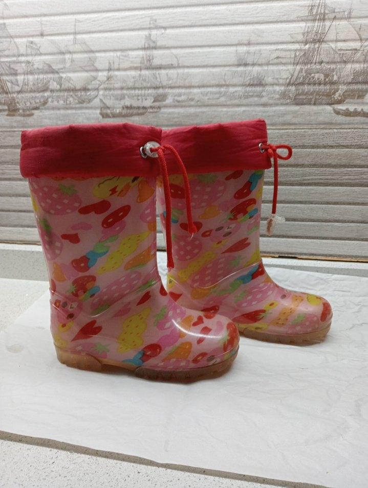 Kız çocukları için renkli lastik yağmur çizmesi, bağcıklı üst kısmı ve fırfırlı detaylarıyla bohem tarzı yansıtıyor. kullanıma engel kusuru yoktur fotoğrafta gördüğünüz gibi temiz