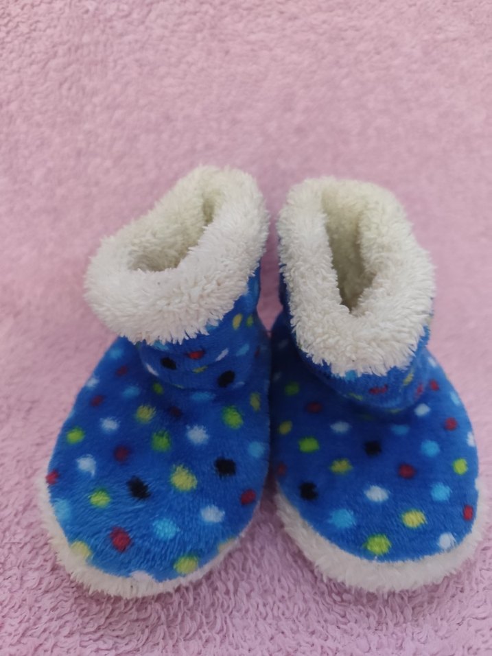 Kız çocukları için yumuşak ve sıcak kumaştan, renkli benekli desenli ve örgü detaylı ev terliği. taban dıştan 13 cm