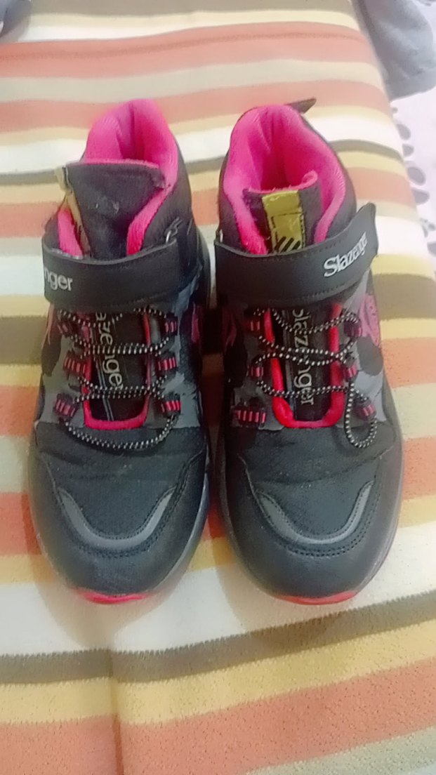 Renkli kız çocuk spor ayakkabısı, lastik tabanlı ve cırt cırtlı kapama ile sokak modasına uygun rahat tasarım. çok az kullanılmış tır hiç bir sorunu deformasyon yoktur 32 numara dır sıfır üründen farksızdır