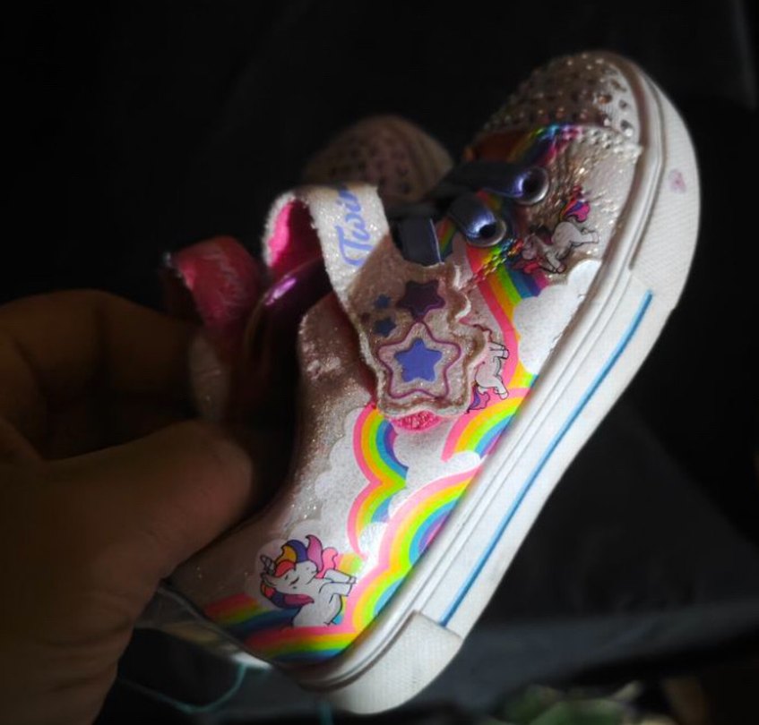 Kız çocukları için renkli tie-dye desenli, unicorn ve gökkuşağı detaylı sneaker. Kauçuk tabanlı ve kolay kullanım için cırt cırtlıdır. 24 numara ışıkları yanıyor
