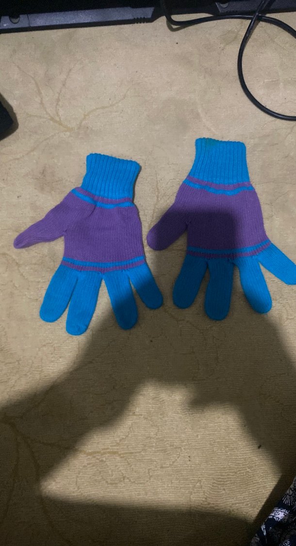Kız çocukları için renkli, triko yapıda, yumuşak ve sıcak kumaştan yapılmış eldivenler. Mor ve mavi tonlarıyla sade, desensiz tasarım sunar.