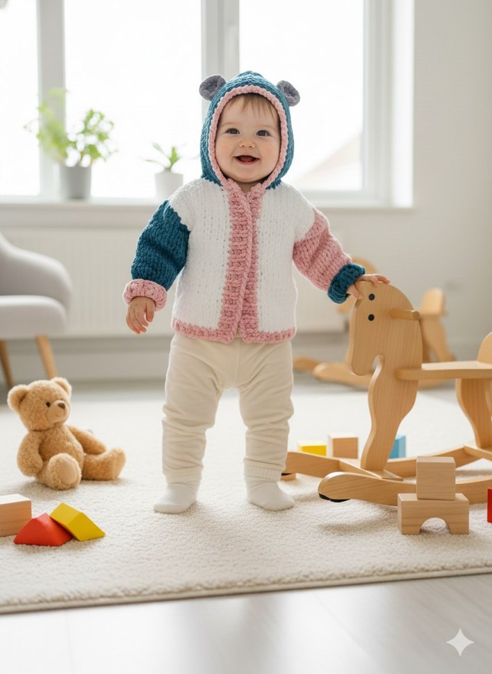 Kız çocuklar için fitted kesim, uzun kollu, beyaz, gri,pembe ve mavi pastel renklerde yumuşak örme hırka. Kulak detaylarının harikalığı peki