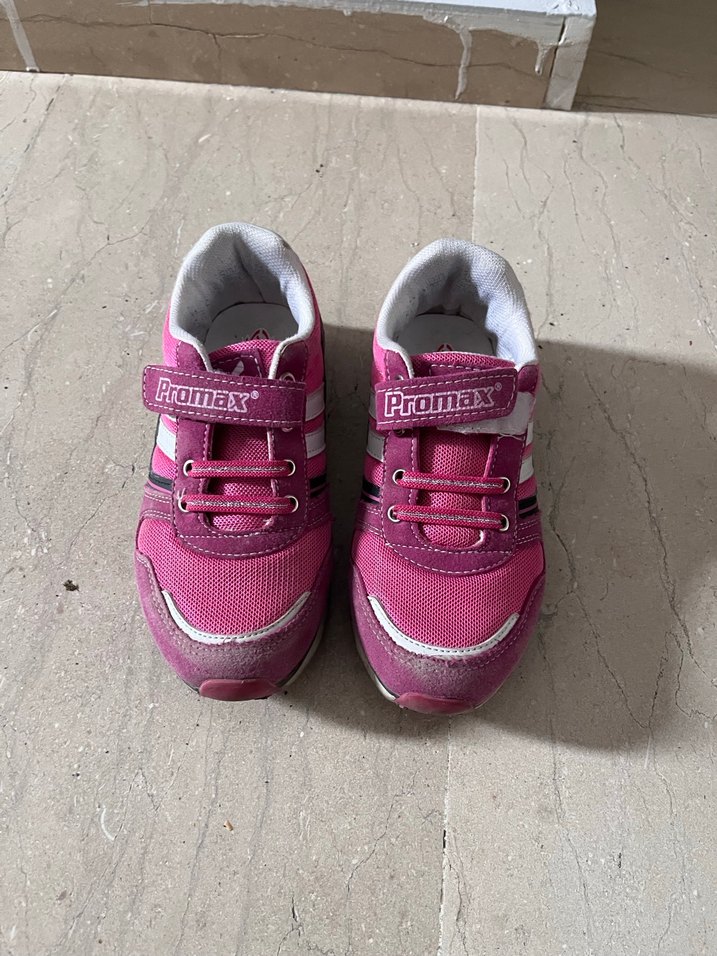 Almadan önce sorunuz, hiçbir sorunu yoktur sıfır ayarında. Pembe renkli, renkli baskılı ve Velcro bantlı kız çocuk spor ayakkabısı. Kauçuk tabanlı, trend sokak giyimine uygun. Marka: Promax.