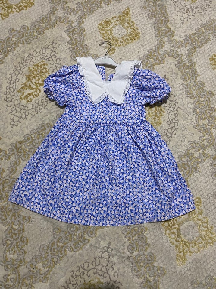 Kız çocukları için vintage tarzda, renkli batik desenli, kısa balon kollu ve bol kesim elbise. Beyaz yakalı, fırfırlı detaylı, yumuşak sentetik kumaştan üretilmiştir.