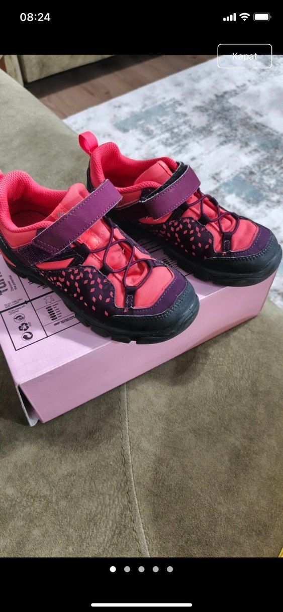 Decathlon Quechua Renkli desenli çocuk spor ayakkabısı, cırt cırtlı, kauçuk tabanlı, sokak stili için uygundur. Hiç bir sorunu yoktur sadece içine tabanlık konulacak fiyatına yansıttım dışı alt tabanı yeni gibidir