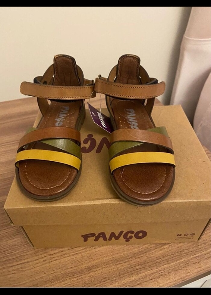 Hakiki deri sandalet. Etiketli, hiç kullanılmadı. 24 numara. 23 numarada giydirebilir.