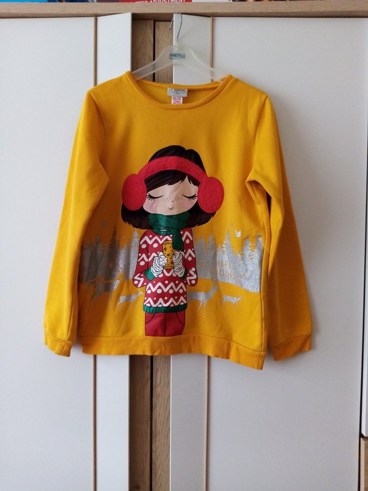 Uzun kollu, yuvarlak yakalı, kız çocuk sarı sweatshirt. Temiz Yumuşak ve sıcak kumaştan, renkli baskılı dolabımda aynı yaşa uyumlu ürünler mevcut bakabilirsiniz ürün birleştirebilirim.