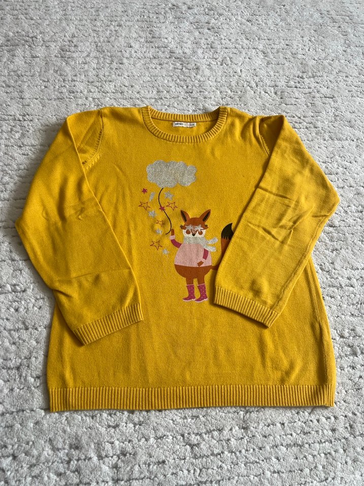 Uzun kollu, bisiklet yaka ve bol kesim sarı triko sweatshirt. Önünde eğlenceli baskı detayı bulunur. Rahat ve günlük kullanıma uygundur.