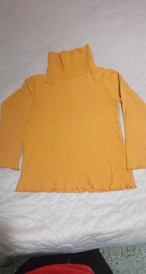 Kız çocukları için sarı boğazlı ve uzun kollu, yumuşak ve sıcak dokulu, sade pastel renkte, vücuda oturan tişört.