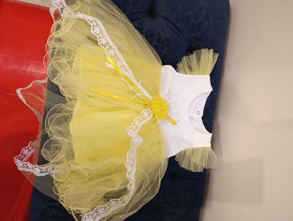 Kız Çocuk Sarı Dantel Tüllü Straplez Elbise