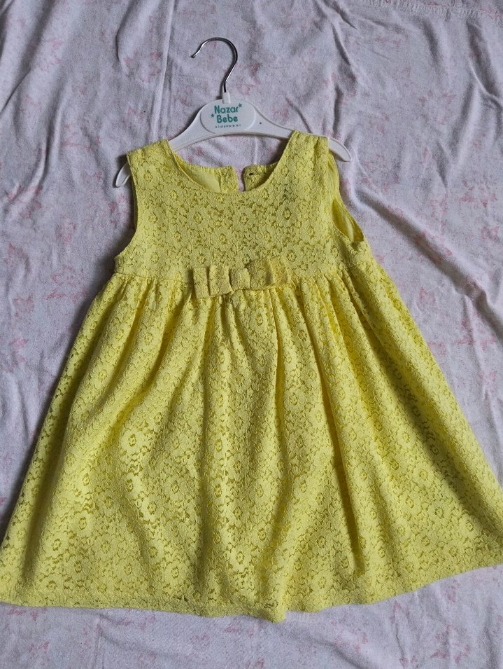 Kız Çocuk Sarı Dantelli Kolsuz Elbise